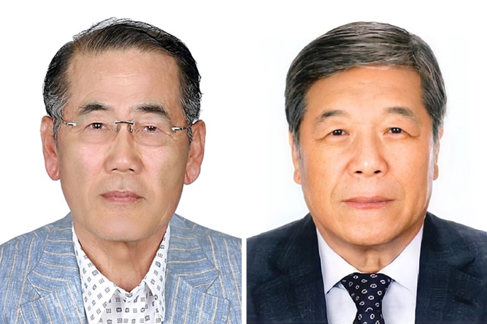 7일 중소기업중앙회에서 중소벤처기업부가 개최한 '2021년 대한민국 중소기업인 대회' 금탑산업훈장 수상자 엄주섭 ㈜단해 대표(왼쪽)와 박준흠 한황산업㈜ 대표. 중소벤처기업부 제공