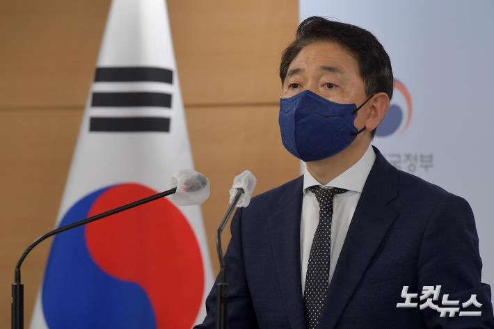 김태응 부동산전수조사추진단장이 7일 정부서울청사에서 더불어민주당 소속 국회의원 등 부동산거래 전수조사 결과를 발표하고 있다.