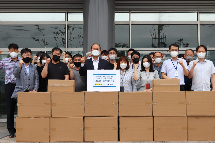 싸토리우스 코리아바이오텍이 15일 (재)춘천바이오산업진흥원에 마스크 1만 장을 기탁했다. (재)춘천바이오산업진흥원 제공