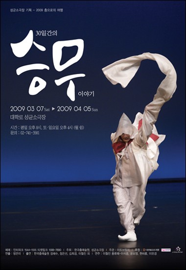 대학로 성균소극장과 한국전통춤예술원은 승무에 해설을 더해 관객들이 전통 춤을 친근하게 느낄 수 있는 ''30일간의 승무이야기''를 3월 7일부터 4월 5일까지 진행한다.