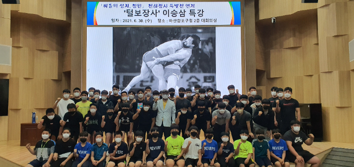 이만기 교수에 이어 유명 씨름인 특강 두 번째 강사로 나선 '털보장사' 이승삼 창원시씨름진흥협의회 부의장은 씨름 후배들과 씨름에 관심있는 일반인 등 90여 명을 대상으로 씨름 입문과정과 털보장사 애칭을 얻게 된 배경, 씨름지도자와 씨름행정가까지 다양한 경험을 토대로 한 생생한 특강을 펼쳤다.