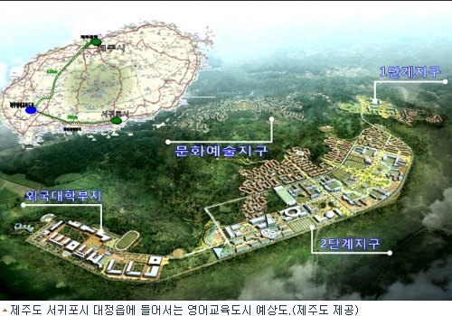 제주도는 공립 국제학교와 사립 국제학교 등 3개 국제학교가 영어교육도시의 시범모델이 될 것으로 기대하고 있다.