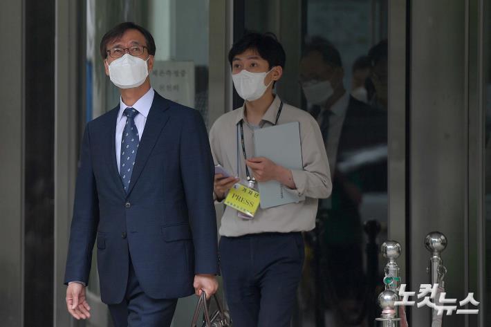 압수수색 과정에서 한동훈(47·사법연수원 27기) 검사장을 폭행한 혐의로 재판에 넘겨진 정진웅(52·29기) 울산지검 차장검사 12일 1심 선고 공판을 마친 뒤 서울중앙지법을 나서고 있다.