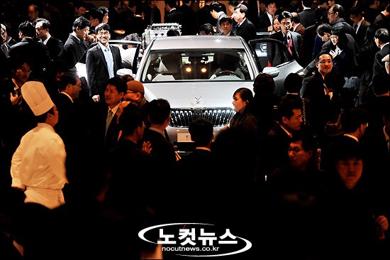[BestNocut_R]11일 오후 서울 하얏트호텔에서 현대자동차의 초대형 플래그십 세단 신형 ''에쿠스''(EQUUS)의 신차발표회가 열린 가운데 행사장 로비가 인파들로 인산인해를 이루고 있다.