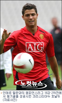 맨유는 11일 새벽 영국 맨체스터 올드트레퍼드에서 벌어진 2008-2009 UEFA 챔피언스리그 16강 2차전 홈경기에서 전반과 후반 네마냐 비디치와 크리스티아누 호날두가 각각 한 골씩을 신고하며 ''''이탈리아 명문'''' 인테르 밀란을 2-0으로 꺾었다.