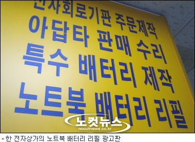 서울 용산 전자 상가에는 ''배터리 리필'' 이라는 간판을 내건 업체들이 즐비하다. 3~4년 사용으로 수명이 다된 노트북 배터리의 성능을 복원해주는 곳들이다.