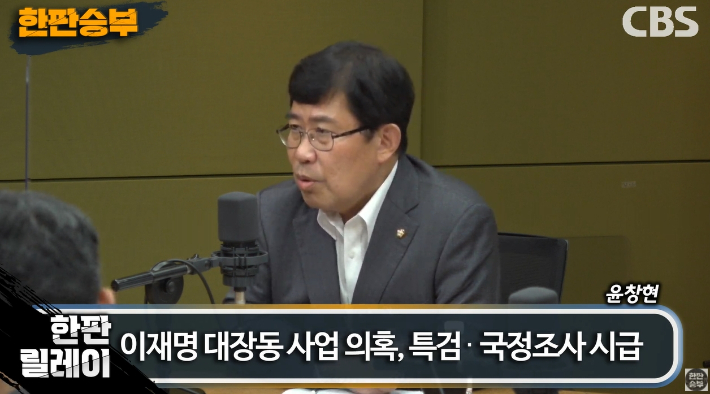 ◇ 박재홍> 이재명 경기지사와 관련한 성남 대장동 개발사업 특혜 의혹 추석 연휴 기간 내내 뉴스가 끊이지 않았습니다. 그래서 오늘 한판승부 2부에서는 이 주제로 릴레이 토론을 준비했습니다. 관련해서 특검을 주장하고 있는 국민의힘 입장을 먼저 듣고요. 이에 대한 민주당 이재명 캠프 입장을 이어서 듣겠습니다. 먼저 국민의힘 대장동 진상조사 TF의 윤창현 의원을 모셨습니다. 어서 오십시오.