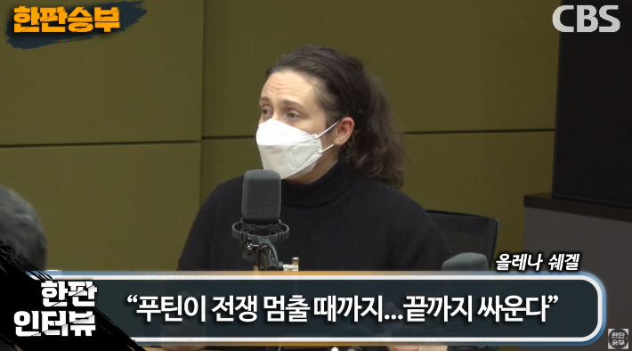 ◆ 올레나 쉐겔> 그러면 다른 국가들은 가만히 있으면 푸틴 입장에서는 가만히 있네, 그러면 더 해보자. 그러면 한 발 더 나아가 보자, 이런 식이거든요. 그래서 저는 지금… 그래서 쉽지 않은 건 누구도 전쟁을 원하지 않고 특히 이게 더 커지는 걸 누구도 원하지 않고 있어요. 그리고 또 우크라이나 사람들은 그래, 우리는 그냥 다 죽여줘요. 우리는 항복할래, 이건 아니잖아요. 우리는 또 우리의 주권을 끝까지 이제 유지해야 되고.