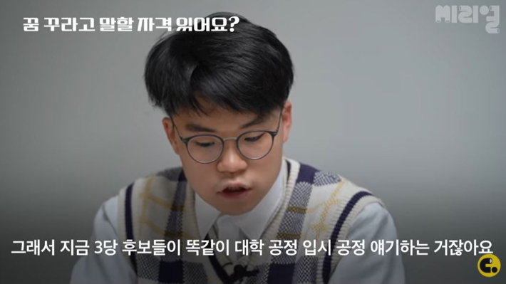 씨리얼 정치수업 초 막판 대선공약 정리 토크. 네번째는 교육격차 편입니다. 유력 대선후보들은 너나 할 것 없이 '공정'을 강조하며 2030을 향해 호소하고 있는데요. 공정 담론은 과연 모든 청년들을 다 포용하고 있을까요? 씨리얼 '용돈 없는 청소년' 시리즈의 1편에 출연했던 특성화고 졸업생이자 대구에 사는 청년 노동자 이학선을 다시 만났습니다. 그는 이번 선거와 후보들의 대선 공약을 어떻게 바라보고 있을까요? 각 대선후보별 10대 공약과 최종 정책공약집을 기준으로 이야기 나눠봤습니다.