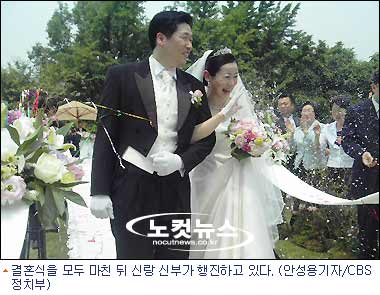 식장에는 동료 국회의원과 학교 선후배 등 5백여명의 하객이 몰려 신랑, 신부의 앞길을 축복해줬다.