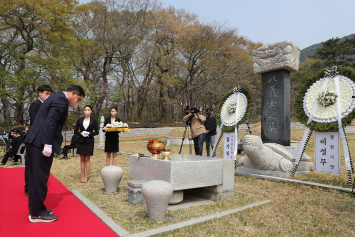 허성무 창원특례시장은 "8의사 묘역이 국가관리묘역이 지정된 것은 지자체와 지역주민이 함께 뜻을 모아서 이뤄낸 것으로 매우 의미가 깊다"며 "앞으로 순국선열의 헌신을 기억하고 희생에 보답할 수 있도록 다양한 보훈 정책을 추진하겠다"고 말했다.
