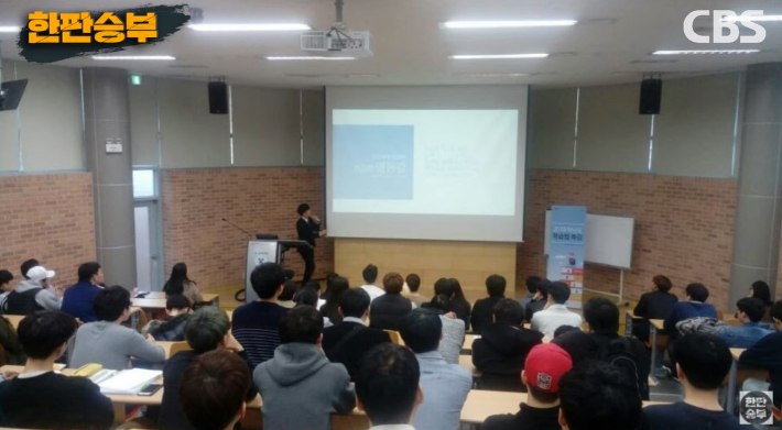 ◇ 박재홍> 그래서 이제 대표님께서 다양한 강연 활동도 하시고 모임도 만드신 게 있는데 그 사진을 한번 저희가 보면서 말씀을 한번 나눠볼까요. 강연하시는 모습이네요.