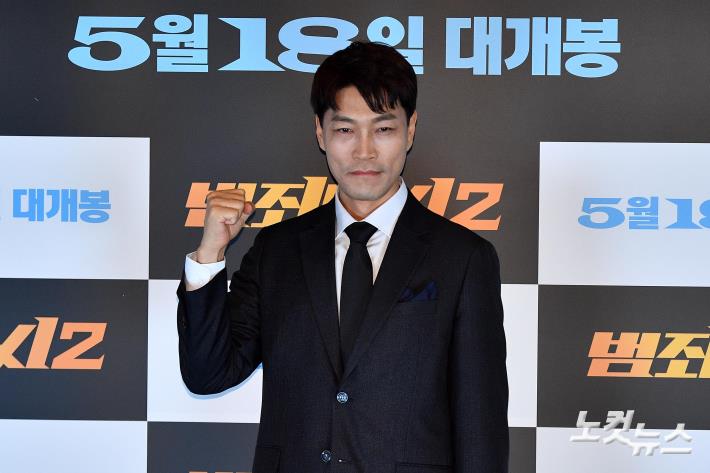 배우 최귀화가 11일 서울 코엑스 메가박스에서 열린 영화 '범죄도시2' 글로벌 컨퍼런스에서 포즈를 취하고 있다.