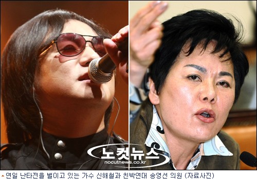 가수 신해철 씨와 국회의원 송영선 의원이 상대방에게 독설을 퍼부으면서 연일 난타전을 벌이고 있다.