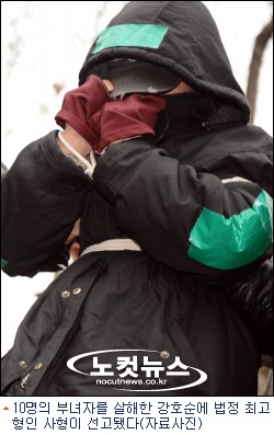 법원이 10명의 부녀자를 연쇄 살해한 피의자 강호순에 대해 법정 최고형인 사형을 선고했다.
