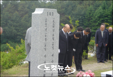 그러나 정 前 총장의 묘에는 전 前 대통령 명의의 조화가 놓여 있지 않아 참배를 하지 않고 그냥 돌아선 것으로 추정된다.