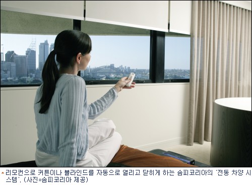 이동훈 솜피코리아 마케팅팀 차장은 "가정용 블라인드, 커튼, 셔터를 중심으로 스위치나 리모컨을 이용해 효율적으로 태양광을 조절할 수 있다"며 "고품격 인테리어 효과 및 에너지를 절약할 수 있는 신개념의 생활문화를 만들어 나갈 계획이다"고 밝혔다.
