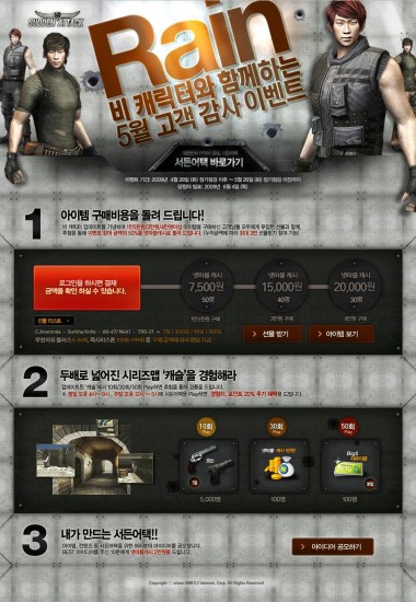 CJ인터넷(대표이사 정영종)이 서비스하고 게임하이(대표이사 김건일)가 개발한 대한민국 대표 FPS게임 ''서든어택''이 월드스타 비 캐릭터를 업데이트하고, ''5월 고객 감사 이벤트''를 진행한다.