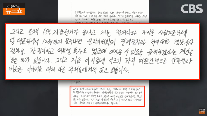 ◆ 조경태> 네, 그 부분 역시도 이준석 전 대표의 주장이지 않겠습니까? 이것을 누군가가 적시가 돼서 확인할 수 있는 방법이 있으면 되는데. 지금 현재로서는 확인할 수 있는 그런 방법이 없지 않겠습니까? 따라서 이 부분에 대해서도 어쨌든 이준석 전 대표의 어떤 법원에 낸 탄원서의 주장이고 지금 방금 말씀드렸던 대로 이런 부분들이 법원에서 어떻게 받아들일지 그 부분에 대해서 아마 좀 지켜봐야 될 것 같다는 생각이 들고요. 어쨌든 이준석 전 대표 입장에서는 앞서 말씀드렸던 대로 가처분을 인용받기 위한 그런 어떤 표현이고 노력이었다 이렇게 보고 있습니다.