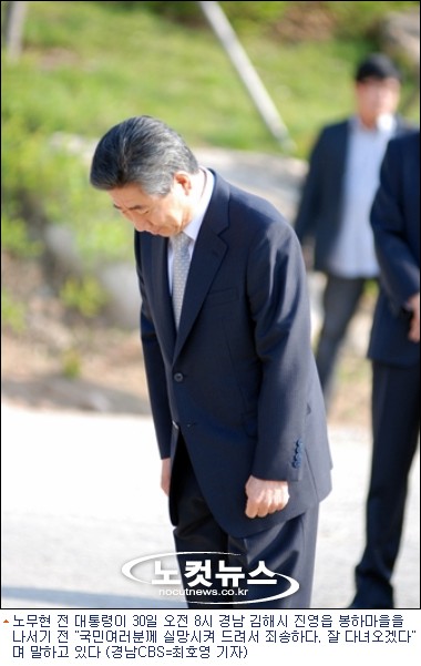 노무현 전 대통령은 30일 봉하마을 사저를 나오면서 "실망스켜드려서 죄송하다"는 짧은 말을 남기고 대검찰청으로 출발했다.