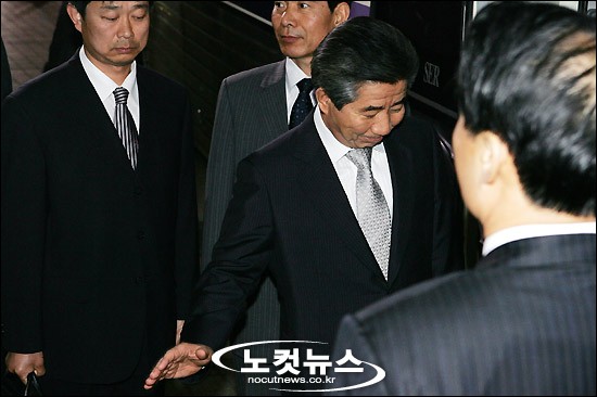 [BestNocut_R]노무현 전 대통령이 1일 새벽 강도높은 검찰 소환 조사를 마친 뒤 서울 서초동 대검찰청을 빠져나가며 취재진을 향해 손인사를 하고 있다.