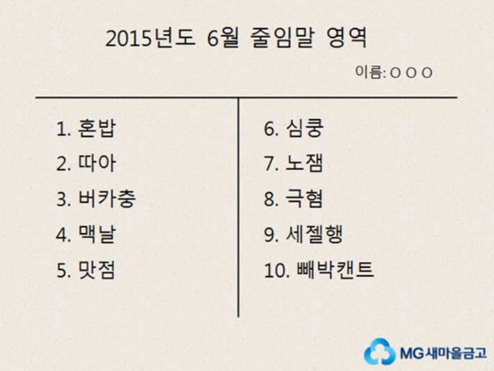 MZ세대의 줄임말 사용 특징. MG 새마을금고 캡처◇ 유상원> 학교에서도 한자를 가르쳐주지 않나요?◆ 박소영> 2000년부터 적용된 '제7차 교육과정'에는 한문이 필수과목에서 빠졌습니다. 한자를 아예 안 배우는 학교도 있습니다. 저도 중,고등학교에서 한자를 배우지 않았고, 제 친구 학교에서는 문과 학생들만 배웠다고 합니다. 한자보다 제2외국어라는 과목으로 중국어, 일본어 등을 배우는데요. 한자어보다 일본어를 먼저 배우는 세대입니다. 학교에서 배우더라도 다른 과목들이 너무 중요시되는 나머지 자연스럽게 우선순위에서 밀리게 됩니다.