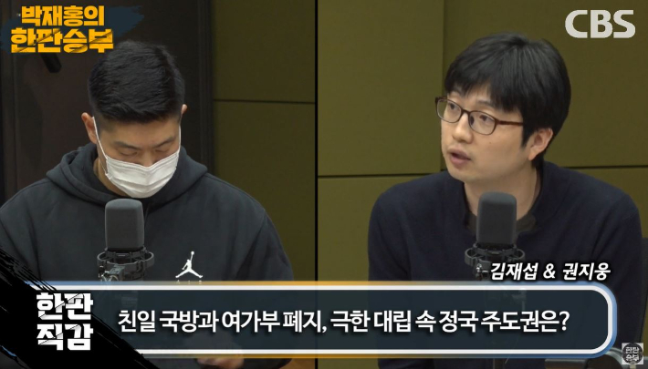 ◇ 박재홍> 이 주제에 너무 얘기 많이 해서요. 마지막 주제 짧게 얘기하겠습니다. 첫 번째 주제 여기에서 마무리하고 두 번째 직감 주제 친일 국방과 여가부 폐지 논란, 극한대립 정국 주도권은 누구에게 갈 것인가. 현 정국 상황 어떻게 보시는지. 한민수 대변인님부터 말씀해 주시죠.