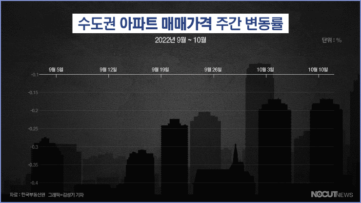 그렇죠. 이번주 서울의 아파트 값도 0.22% 내렸는데. 2012년 8월 22일 조사 이후 10년 2개월 만에 가장 많이 내렸습니다.