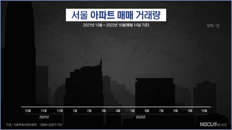 그렇습니다. 현재까지 서울에 계약이 이뤄진 아파트 매매가 54건이거든요. 지난해 10월 한 달 간 거래건수가 2195건이었습니다. 거래건수의 95%가 줄어든겁니다.