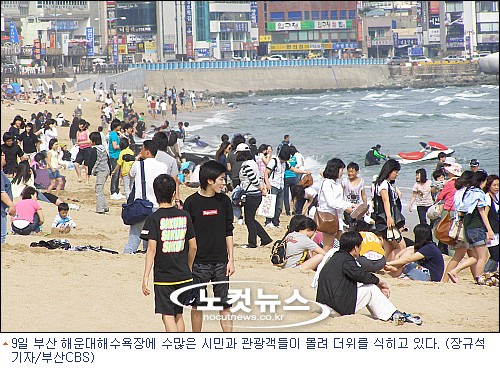 해운대 모래사장에서는 때이른 비키니 수영복 차림의 여성들도 군데군데 눈에 띄었고, 일부 더위를 이기지 못한 시민들은 바다에 뛰어들어 해수욕을 즐기기도 했다.