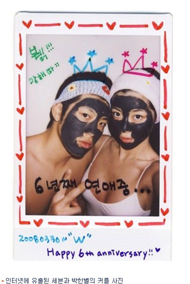 사진에는 날짜를 의미하는 듯한 ''20080330''이라는 숫자와 ''6년째 연애중''이라는 글씨도 담겨있다. 또 특정 장소에서 교제 6주년을 기념한 듯 ''W Happy 6th anniversary''라는 글씨도 쓰여 있다.