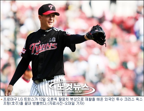 프로야구 LG 트윈스가 외국인 투수 크리스 옥스프링(호주)을 방출했다.