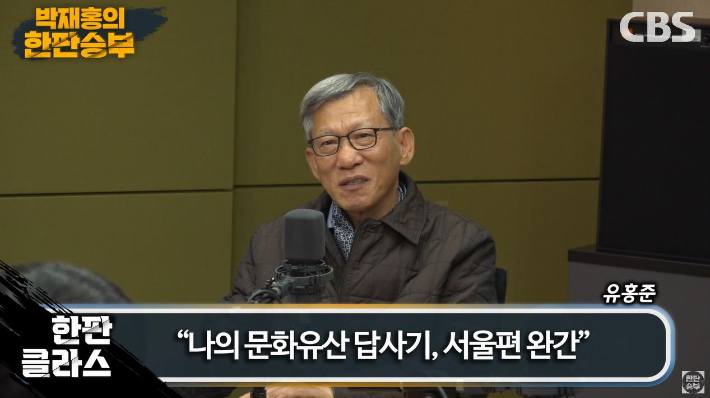 ◇ 박재홍> 박재홍의 한판승부, 한판클라스. 정말 이 자리에 모실 만한 큰 스승 같은 분을 오늘 모셨습니다. 나의 문화유산 답사기. 이 한마디로 충분히 설명이 될 것 같은데요. 일본 편 5권, 중국 편 3권 그리고 12권이 서울 편 나오면서 총 20권의 책을 내셨어요. 유홍준 한국학중앙연구원 이사장님 모셨습니다. 선생님, 어서 오십시오.