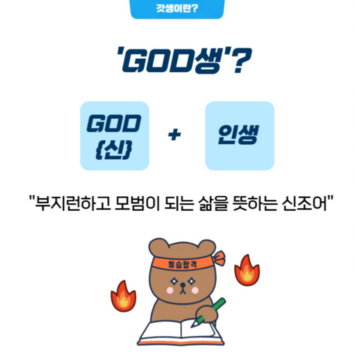◇ 유상원> '갓생'이 뭔지 간략하게 설명해주실 수 있나요?◆ 박소영> 갓생이란 신을 뜻하는 영단어 갓과 인생을 합친, 부지런하고 모범적인 삶을 산다는 의미의 단어입니다. 단어 앞에 god을 붙임으로써 그 단어를 높이고 특별하게 만드는 하나의 신조어가 '인생'에도 붙은 것입니다. 대학생인 제가 성적을 만점 가까이 유지하며, 대인 관계가 원만하고, 대외활동과 교내활동을 열심히 하며 스펙도 쌓는 것을 보고 갓생을 산다고 합니다. 요즘 MZ세대 사이에서 갓생 살기는 하나의 트랜드가 되었습니다.