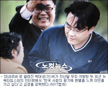 ''미네르바''라는 필명으로 더 잘 알려진 인터넷 논객 박대성(31) 씨가 지난달 무죄로 석방된 뒤 최근 뉴욕타임스(NYT)와 가진 인터뷰에서 밝힌 말이다.