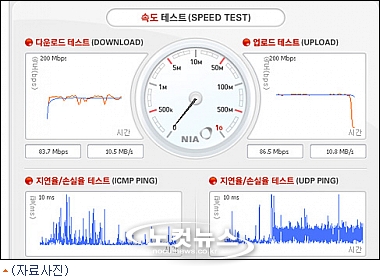 인터넷망의 안정성을 나타내는 응답지연시간의 경우는 평균 11ms(millisecond, 1천분의 1초), 손실률은 0.029%로 국제표준 권고수준보다 각각 9배, 34배 정도 높았다.