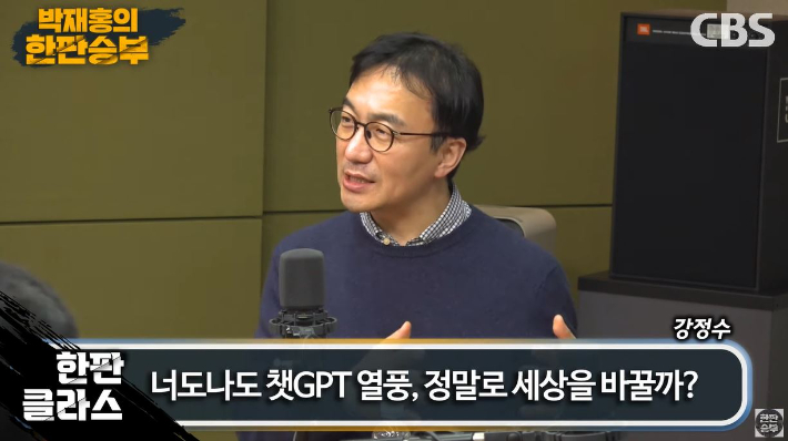 ◇ 박재홍> CBS라디오 박재홍의 한판승부 함께하고 계십니다. 금요일 2부는 한판클라스 저희가 인기코너로 진행하고 있는데 오늘 오랜만에 또 가장 최근에 가장 배우고 싶은 주제를 가지고 한판클라스를 꾸미게 됐습니다. 여러분, 챗GPT라고 하시죠? 요즘 언론에 많이 나오기도 하고 또 실제로 해 보면서 이거 장난 아닌데? 이거 어떻게 되는 거야 하면서 굉장히 신기해하시는 분 많으신데 오늘 챗GPT에 대해서 한번 처음부터 자세하게 알아보도록 하겠습니다. 전 청와대 디지털소통센터장이셨고요. 미디스피어에 근무하시는 강정수 박사를 모셨습니다. 박사님, 어서 오십시오.