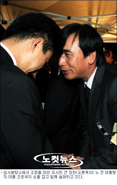 유 전 장관은 노 전 대통령 서거 직후 봉하마을로 내려와 현재까지 조문객들을 맞고 있다.