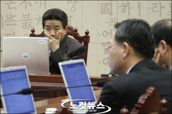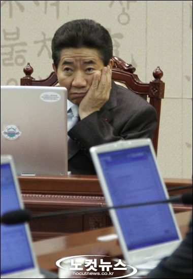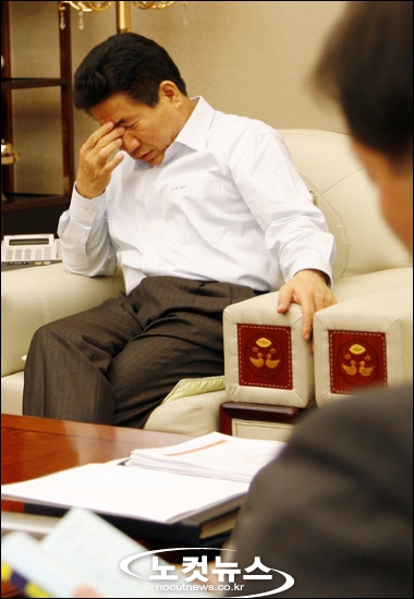 2007.7.21 아프카니스탄 피랍관련해서 아프카니스탄대통령과 통화를 하기전에 고민에 잠겨있다.