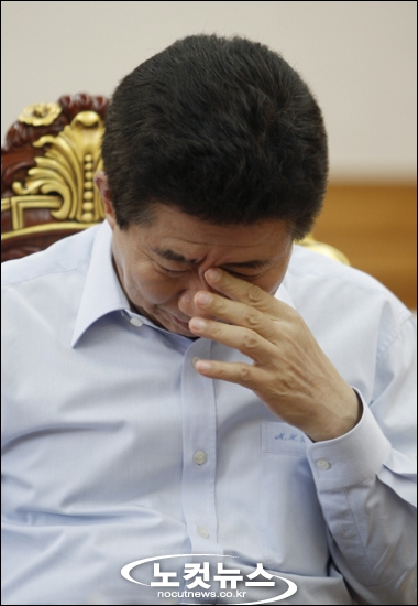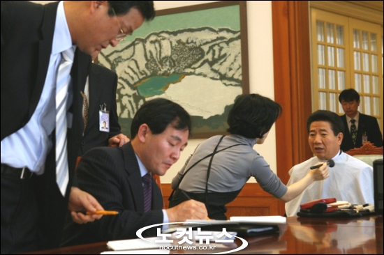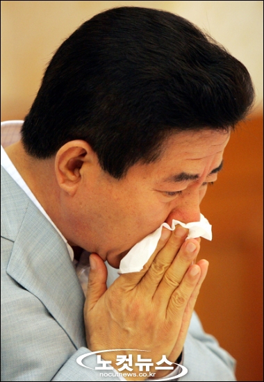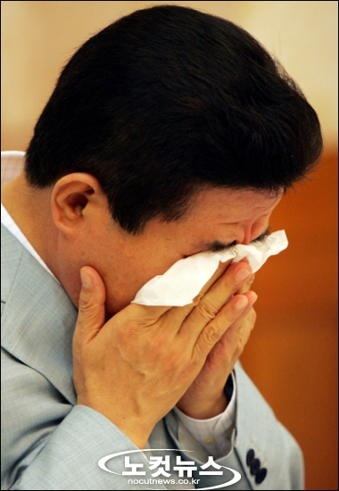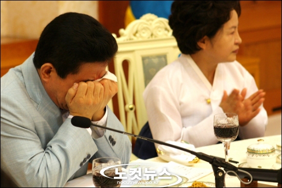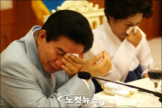 2006.8.27 청와대 비공식 면담중 눈물을 흘리는 노무현 대통령부부