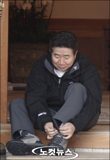 2008.1.13 산행을 준비하며 신발 끈을 매는 모습.(관저)