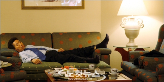 2007.1.31 회의를 마치시고 잠시 소파에 누워 휴식하는 모습
