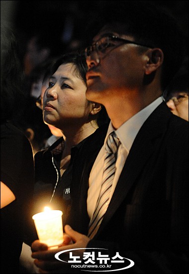 故 노무현 전 대통령을 추모하기 위한 ''기억하겠습니다!'' 시민추모제가 행정안전부의 반대로 서울광장 개최가 무산된 가운데 27일 오후 정동극장 인근으로 모여든 추모객들이 촛불을 들고 있다.