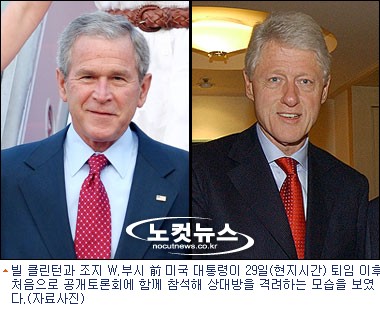 민주당과 공화당 출신으로 미국의 대통령직을 연임하며 똑같이 8년간 재임했던 정치계의 맞수 빌 클린턴과 조지 W. 부시가 29일(현지시간) 퇴임 후 처음으로 공개토론회에 함께 등장했다.