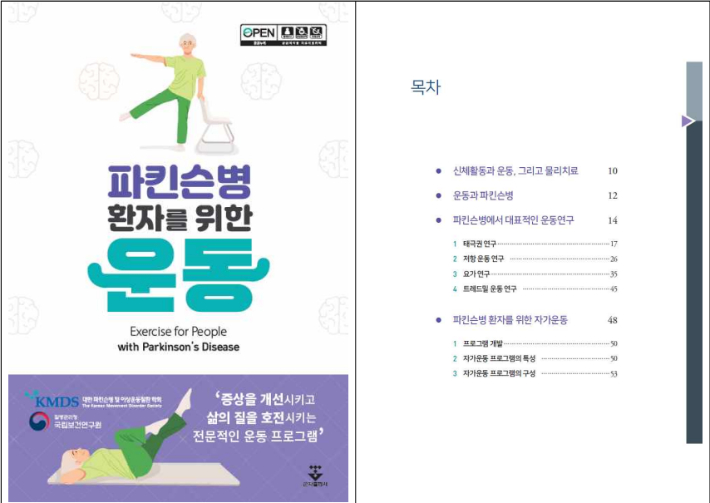 도 함께 선보였다. 환자가 가정에서 스스로 할 수 있도록 운동 전문가·파킨슨병 전문가가 공동 개발한 자가운동 프로그램이 글·그림의 형태로 상세히 제시돼 있다.
