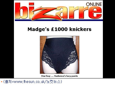 최근 한 경매사이트에서 중고속옷이라는 이유로 경매 취소 통보를 받아 경매가 불가능하게 보였던 ''''마돈나 속옷''''이 결국 1천파운드(한화 약 184만원)에 낙찰됐다고 영국 신문사 ''더 썬''이 9일(현지시간) 보도했다.