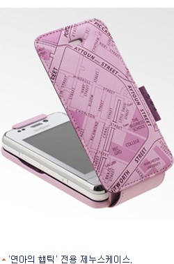 제누스케이스는 지난 5월말에 발매돼 월드히트 예감을 보이는 삼성전자의 새로운 풀터치폰 ''연아의 햅틱(W7700)'' 전용케이스를 선보였다.