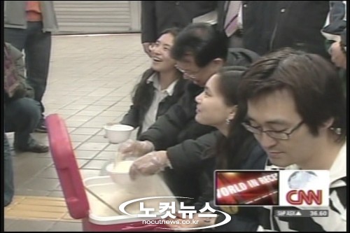 CNN은 또 ''''교회는 어려운 시기에 가난한 사람과 고통을 함께 나눠야 한다''''는 김삼환 목사의 메시지를 전하면서 ''''한국의 가장 유명한 기독교지도자 중 한 사람''''인 김목사가 교인들과 함께 직접 지하철 역 노숙자들에게 밥을 퍼주는 장면을 보도했다.