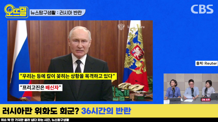 ◇ 채선아> 네. 여기까지 주말 사이 있었던 러시아의 반란 사태 총정리해 봤습니다. 조석영 PD, 신혜림 PD 수고하셨습니다.