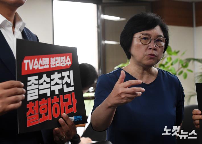'TV수신료 분리징수 중단 촉구' 단식농성 중인 김현 위원